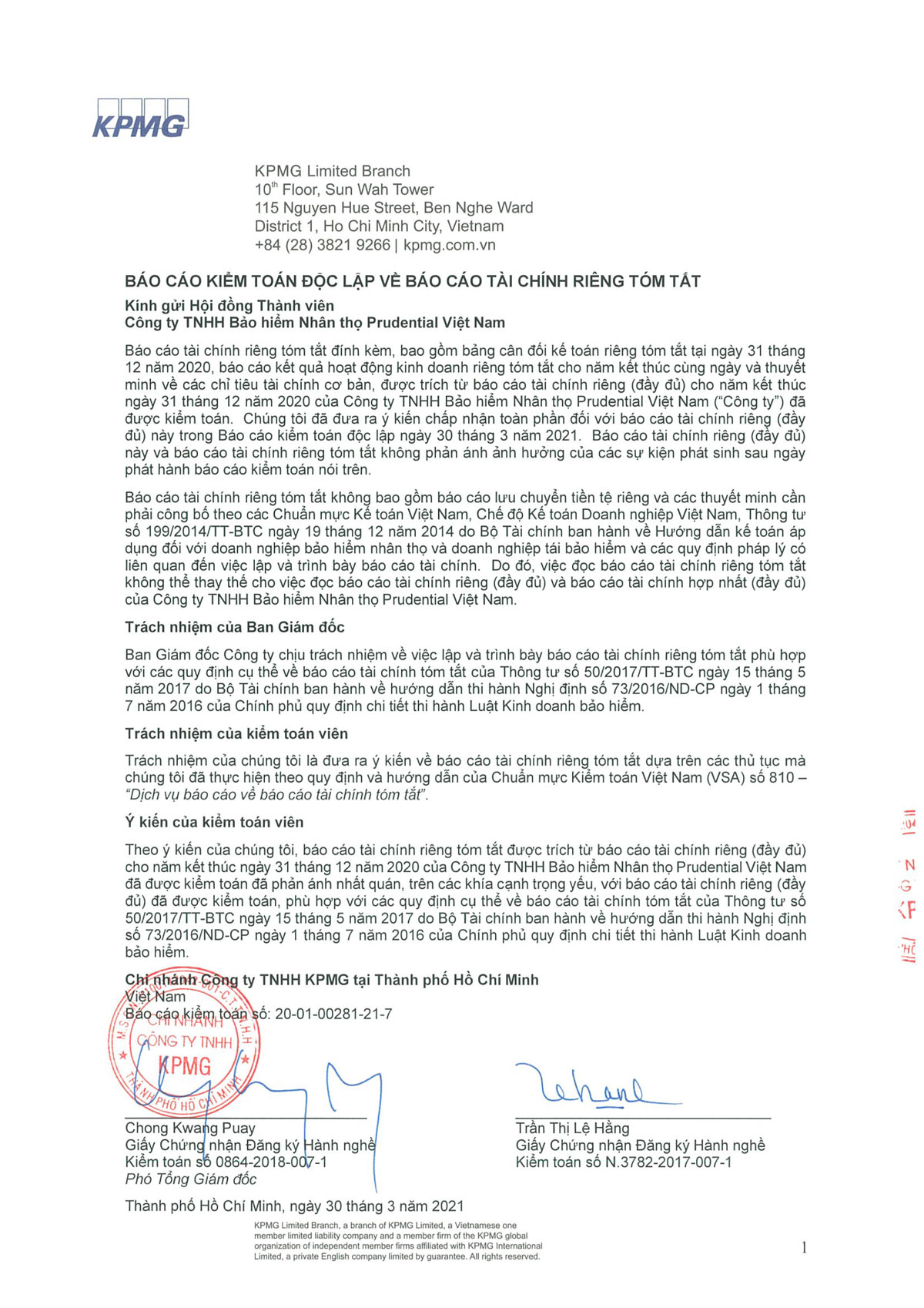 Prudential Việt Nam - Báo cáo tài chính riêng 2021